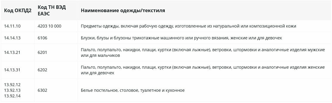 Кто не должен маркировать одежду
